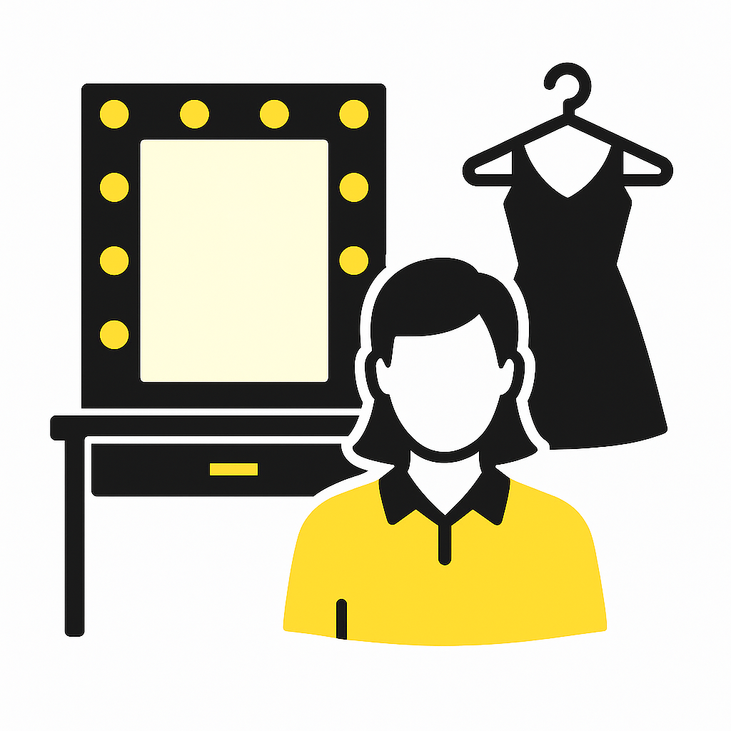 Equipped with illuminated mirrors and styling space for models or presenters.